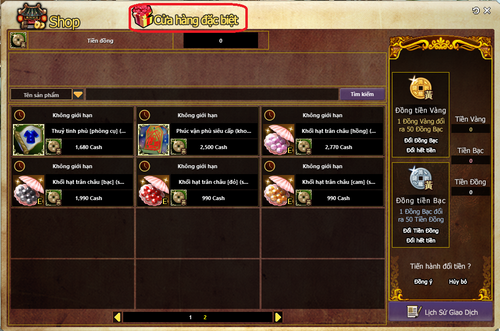 Shop tiền đồng ra mắt bao gồm nhiều vật phẩm quý hiếm như :